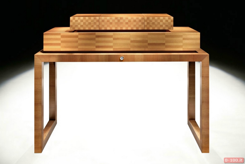 Il designer di mobili spagnolo Jaime Tresserra Clapés ha creato Joyero, uno scrigno porta gioielli realizzato in noce chiaro con un alternarsi di scacchi chiari e scuri di noce intarsiato.