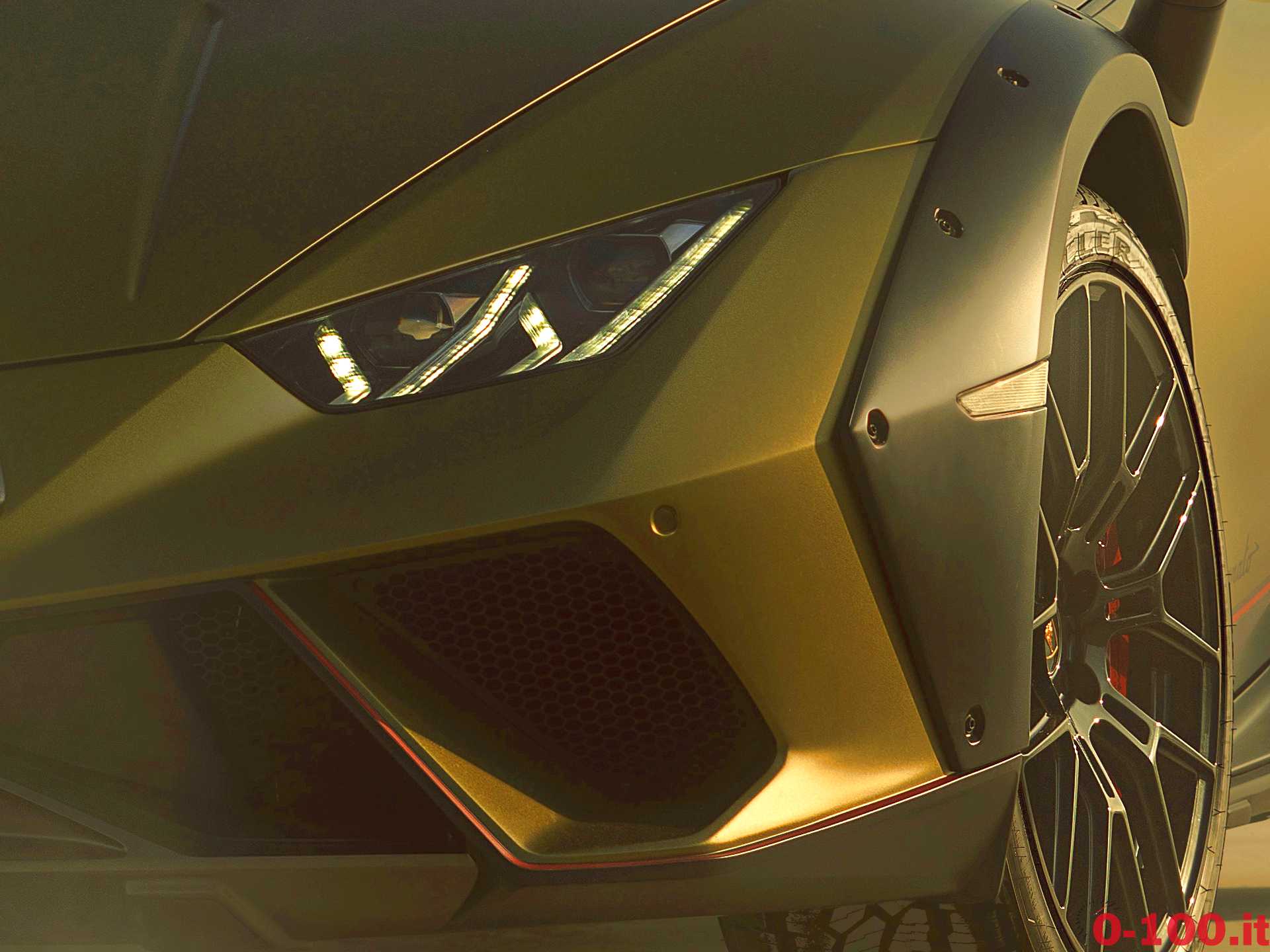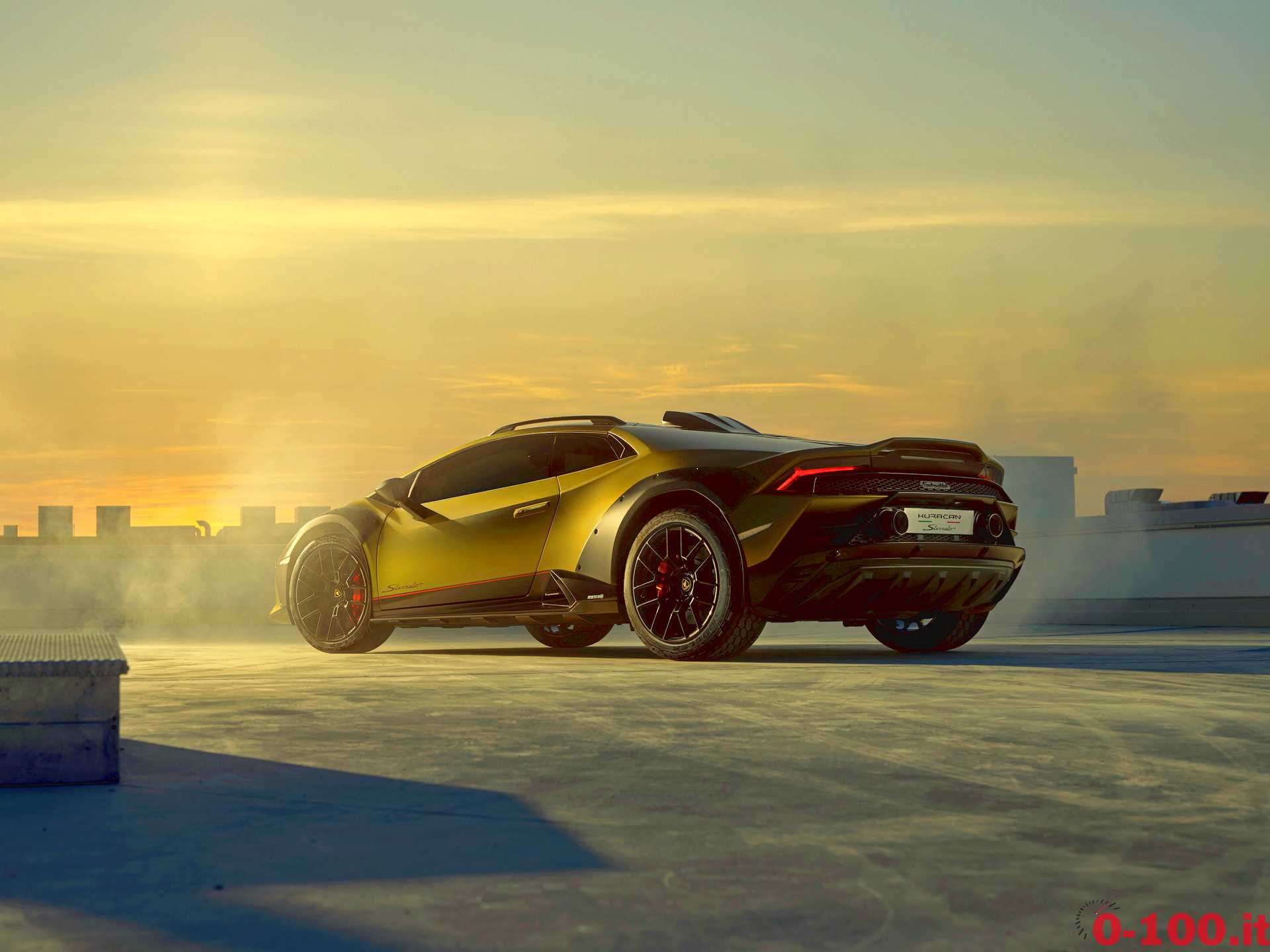 Come suggerito dalla sigla identificativa posta sullo scivolo laterale con profonda carenatura, la Lamborghini Huracan Sterrato monta il 10 cilindri 5.2 di derivazione Audi che, in questo nuovo allestimento, produce 610 cavalli. Non è ancora nota la tiratura della versione e siamo, quindi, “costretti” ad attendere il 30 novembre.