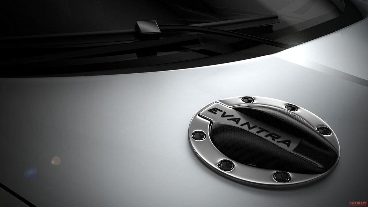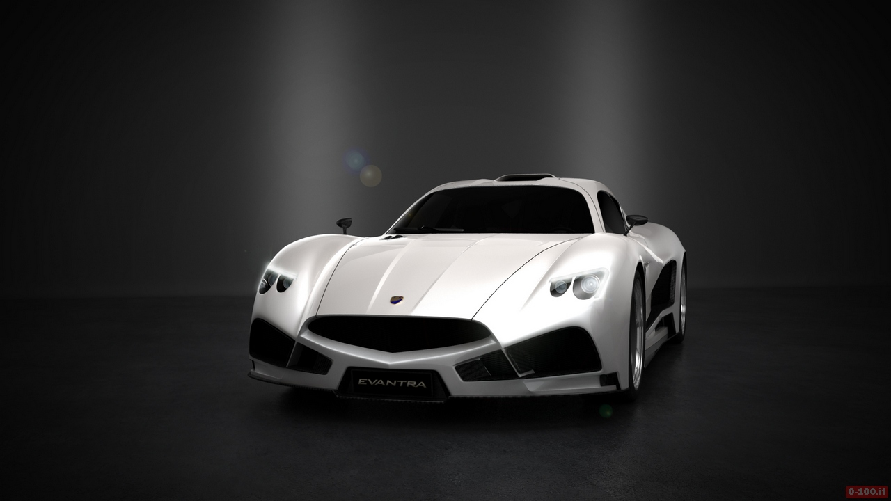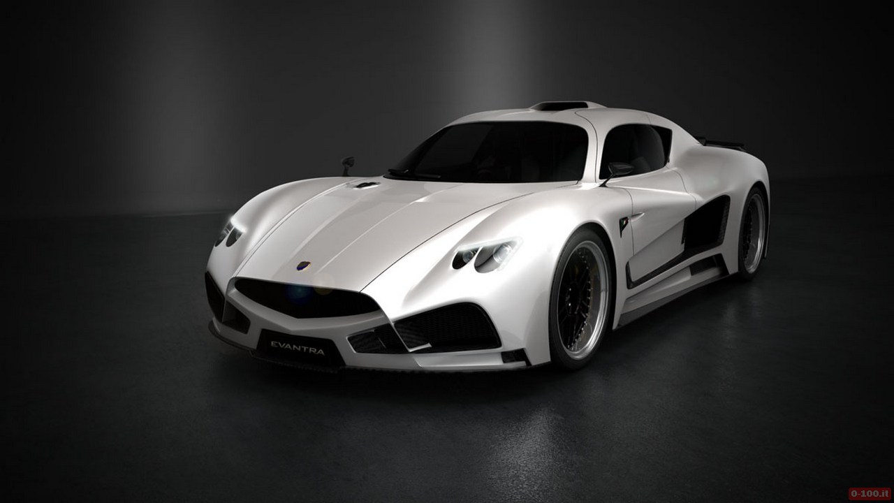 Accreditata di un peso (con carrozzeria in fibra di carbonio) di 1.300 kg, la Evantra V8 percorre lo 0-100 in 3″2 e supera 350 km/h.