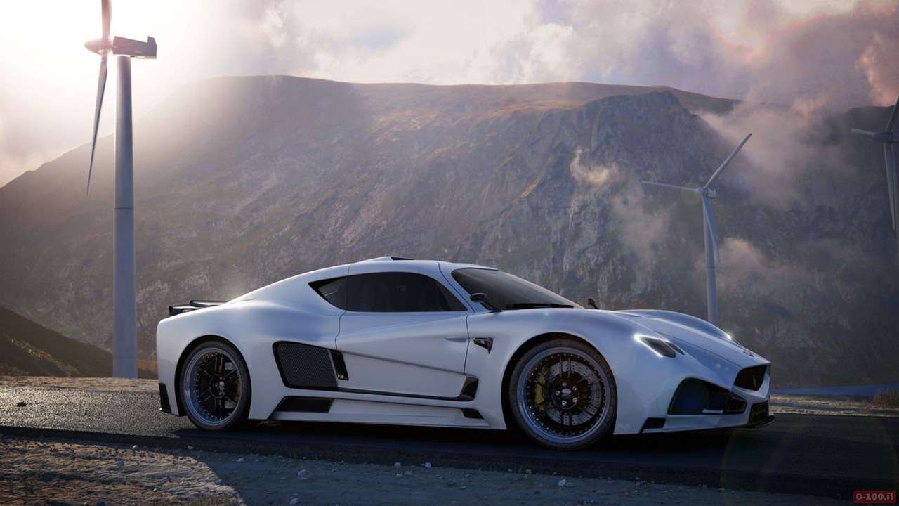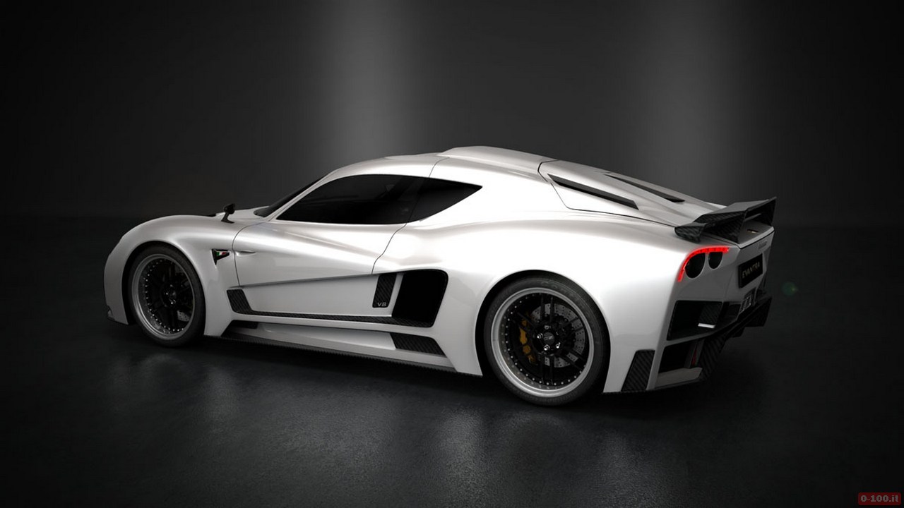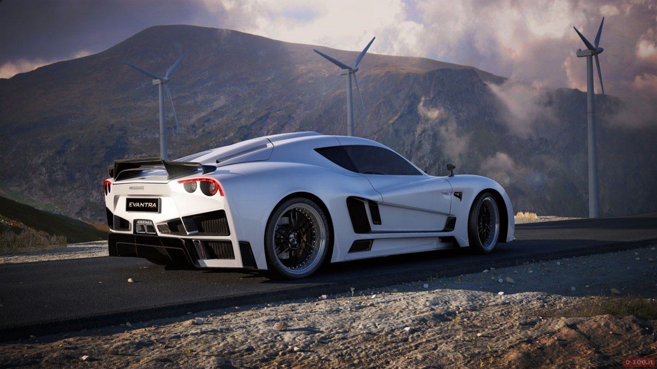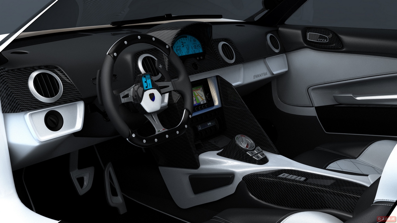 Accreditata di un peso (con carrozzeria in fibra di carbonio) di 1.300 kg, la Evantra V8 percorre lo 0-100 in 3″2 e supera 350 km/h.