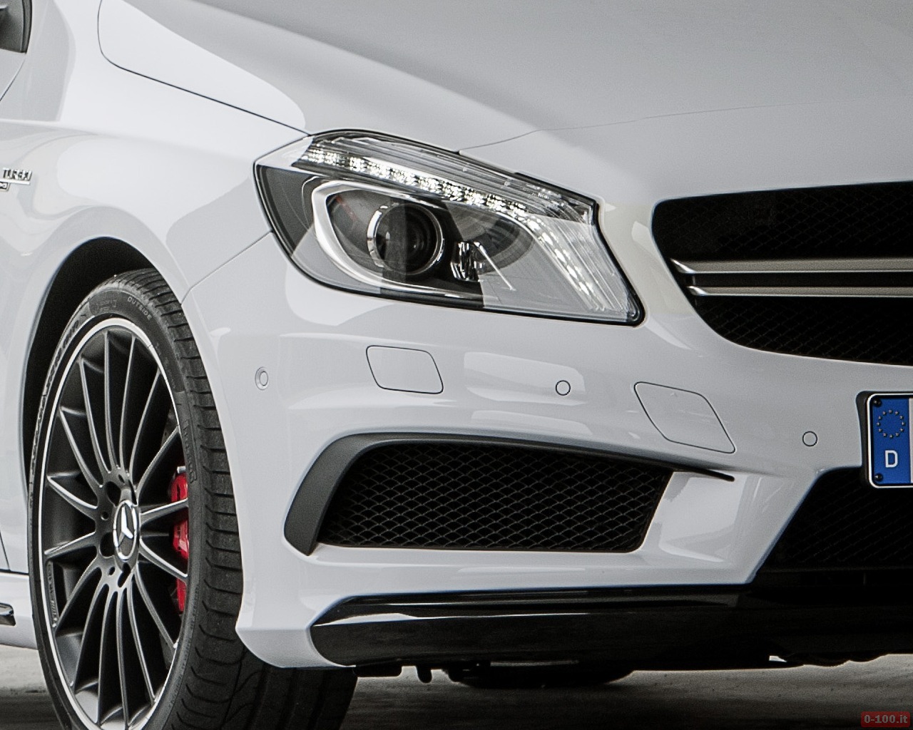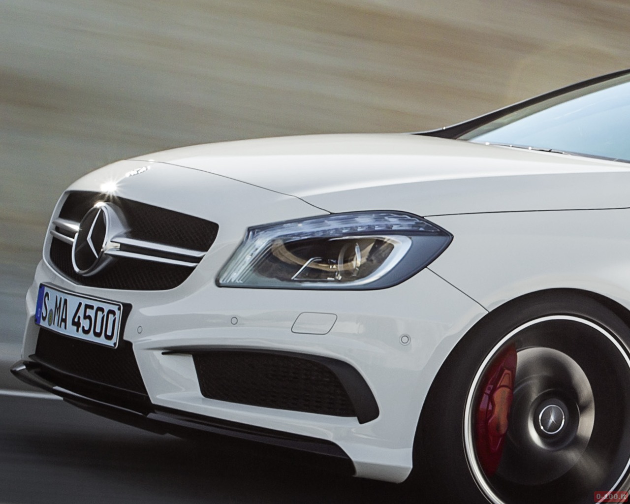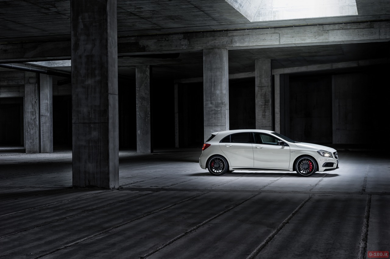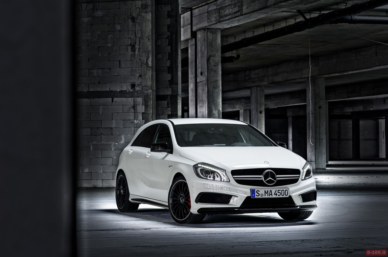 Della Mercedes A45 AMG, al debutto al Salone di Ginevra 2013, parlano soprattutto i dati relativi alle prestazioni: 0-100 in 4″6 e 250 km/h di punta massima autolimitata.