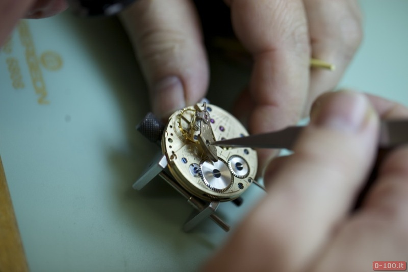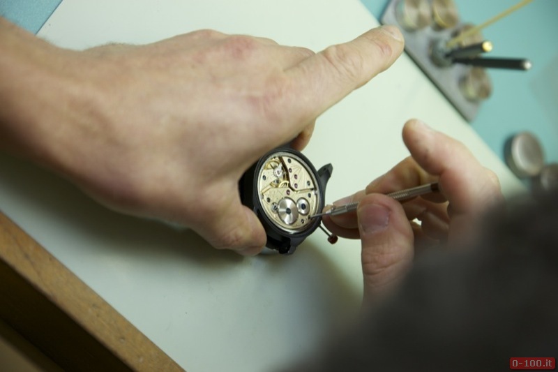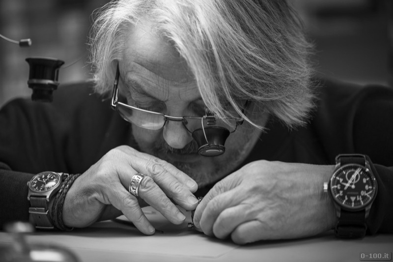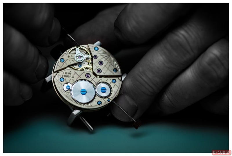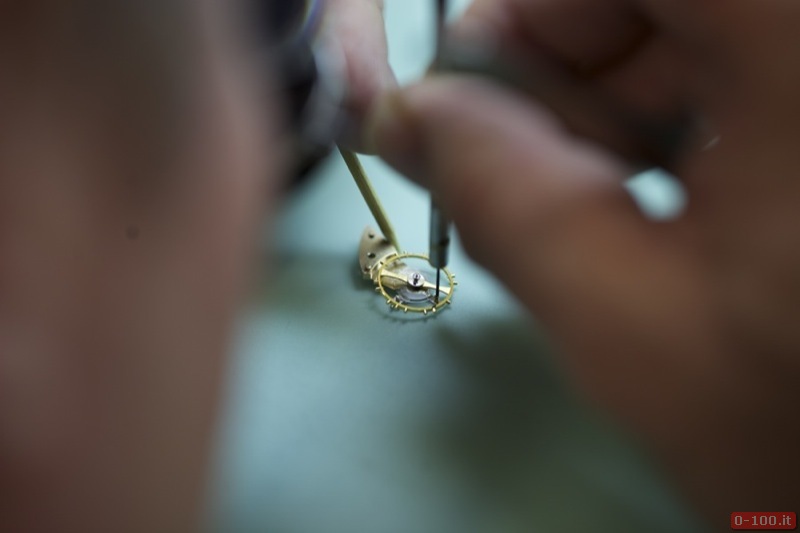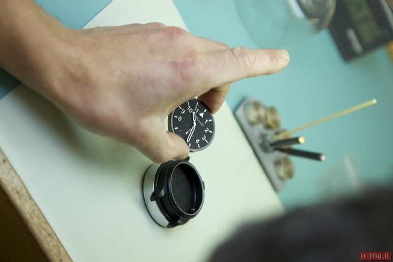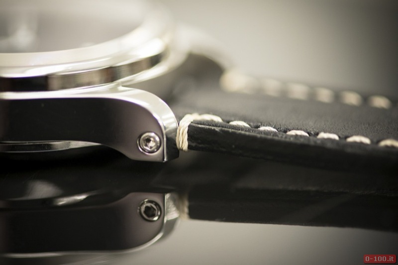 Il quadrante dipinto a mano, con base in ottone e vetro zaffiro con interno ed esterno antiriflesso, è costituito da due dischi che compongono la costruzione ‘a sandwich‘. Ore e indici sono ricoperti con SuperLuminova.