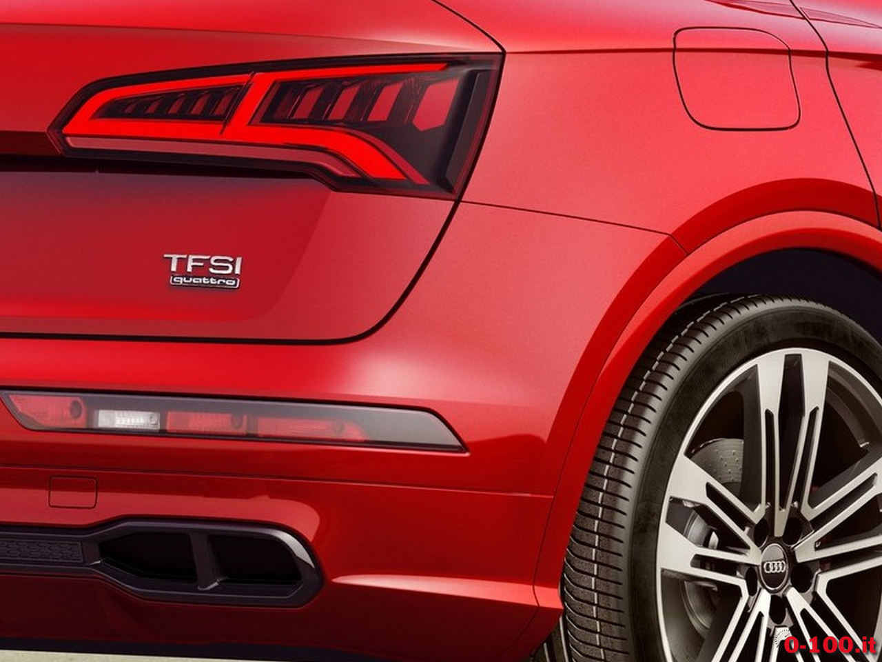 L’estetica dell’SQ5 celebra la proverbiale eleganza sportiva Audi, un equilibrio perfetto che non concede preferenze verso l’una o l’altra di queste due qualità. Nella vista frontale si coglie il diverso paraurti, più pronunciato nella parte inferiore e dotato di prese d’aria specifiche dei modelli S. La calandra Single Frame presenta doppie lamelle in alluminio e particolari in grigio opaco. Posteriormente si può cogliere lo spoiler sulla cima del lunotto e il diverso fascione, con la parte inferiore caratterizzata dagli scarichi di elaborata forma geometrica perfettamente integrati nella forma dello scudo e raccordati mediante una griglia sottile. Un accenno di estrattore in colore carrozzeria dà il tocco finale. La distinzione si trova anche negli specchi con calotte in tinta alluminio e nella profilatura dei parafanghi, oltre naturalmente alle ruote in lega da 20″ con pneumatici da 255/45 (optional i cerchi da 21 con cinque differenti design).