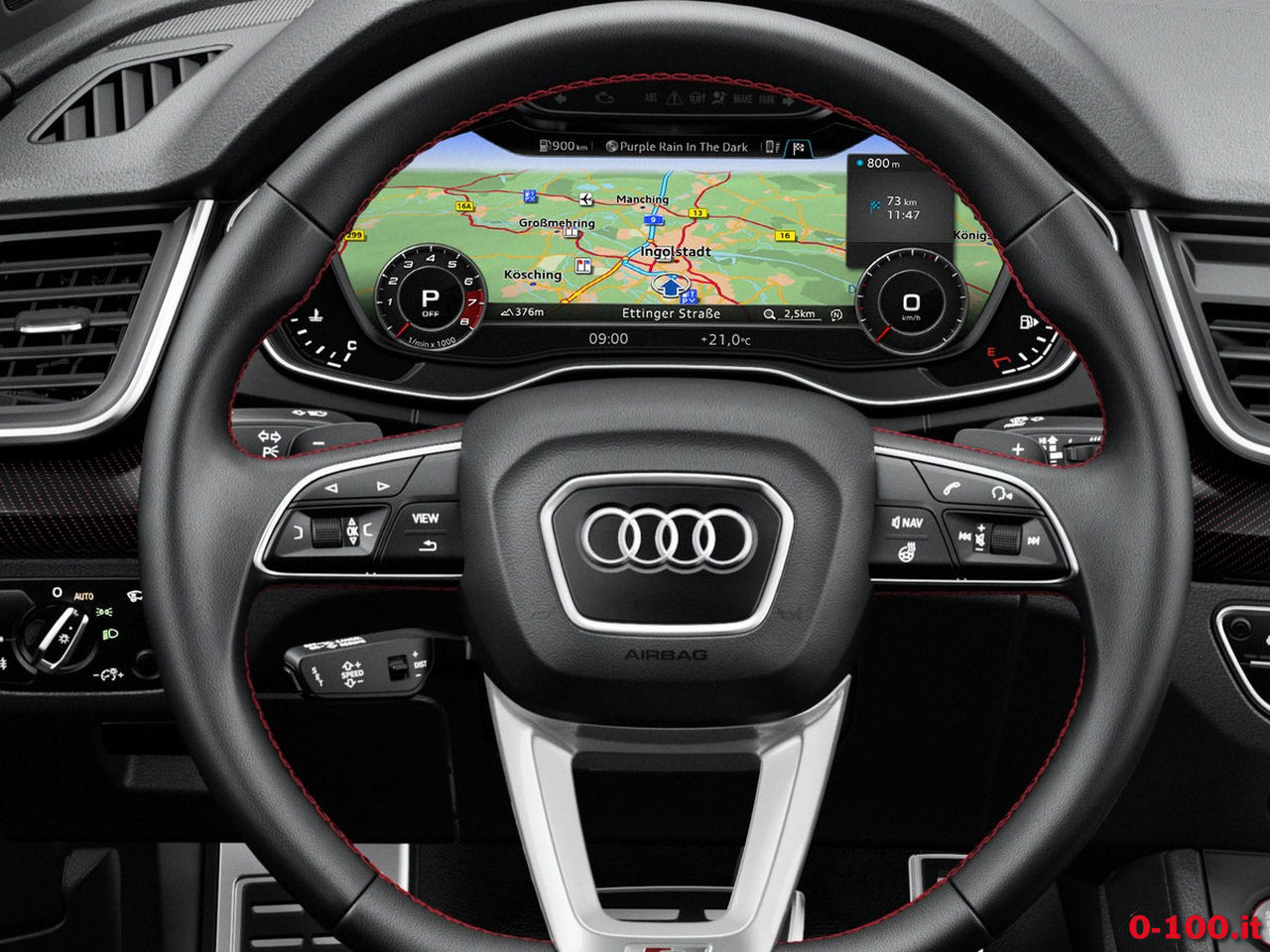 - Interno in pelle/Alcantara con cuciture a contrasto