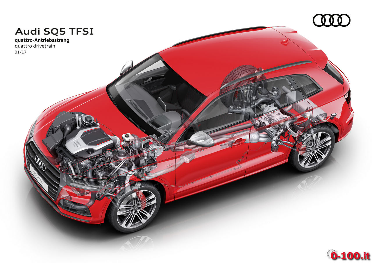 SALTO IN ALTO. IL V6 TURBO 3 LITRI DA 354 CAVALLI DI S5 E S4 “SI ARRAMPICA” SULL’AUDI Q5 E DA OGGI VA AD EQUIPAGGIARE L’SQ5. ABBANDONATO IL TURBODIESEL, IL SUV MEDIO PREMIUM DEI QUATTRO ANELLI HA 10 CV IN PIU’ RISPETTO ALLA PORSCHE MACAN S MA 50 CV IN MENO SULLA MACAN TURBO. FA LO 0-100 IN 5″4: BUONO MA LA TURBODIESEL FACEVA 5″1. E POICHE’ ORA C’E’ L’ALFA ROMEO STELVIO QUADRIFOGLIO L’RS Q5 E’ “MORALMENTE” OBBLIGATORIA.