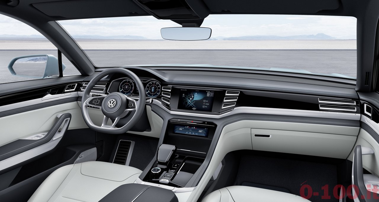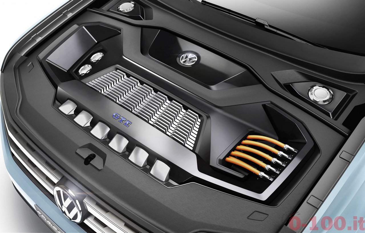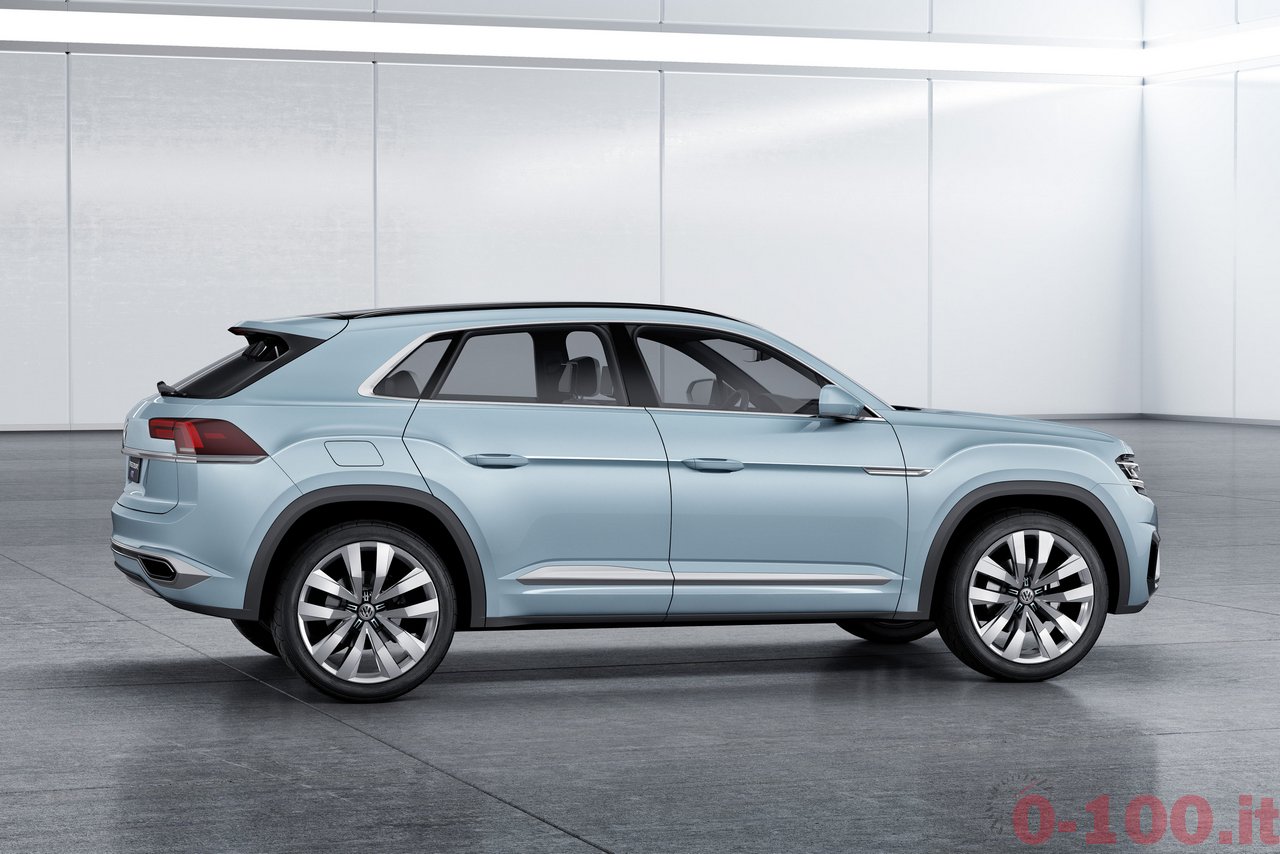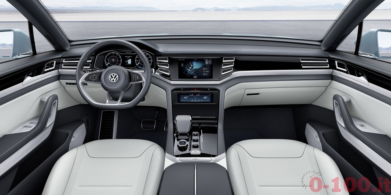 5 METRI DI SUV MEDIO. AL NAIAS 2015 VOLKSWAGEN PROSEGUE L’AVVICINAMENTO AL SUV MEDIO CHE VENDERA’ SUL MERCATO AMERICANO. DOPO CROSSBLUE E CROSSBLUE CONCEPT ECCO LA CROSS COUPE’ CONCEPT CON MOTORE IBRIDO (V6 E 2 MOTORI ELETTRICI). LA TRAZIONE INTEGRALE SFRUTTA UN “ALBERO CARDANICO ELETTRICO”: IL MOTORE (ELETTRICO) CHE MUOVE L’ASSE POSTERIORE E’ COMANDATO VIA CAVO.