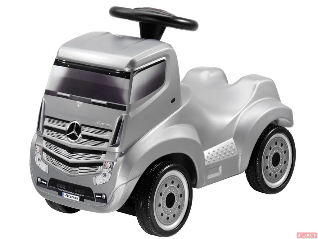Per i fanciulli che si emozionano di fronte a un gigantesco TIR c’è la motrice Actros Mercedes 2 disponibile in grigio e adatta a bambini di età dai 18 mesi in su. Prezzo: 69,90 euro.