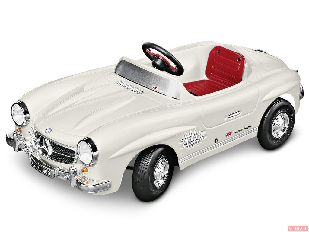 L’SLS AMG in versione “baby”, colore bianco opaco (disponibile anche in grigio Monza magno) per sfrecciare in sicurezza nei corridoi di casa. La produzione della Bobby-Benz è limitata a 2.500 esemplari e adatta a bambini di età dai 18 mesi in su. Prezzo: 79,90 euro.