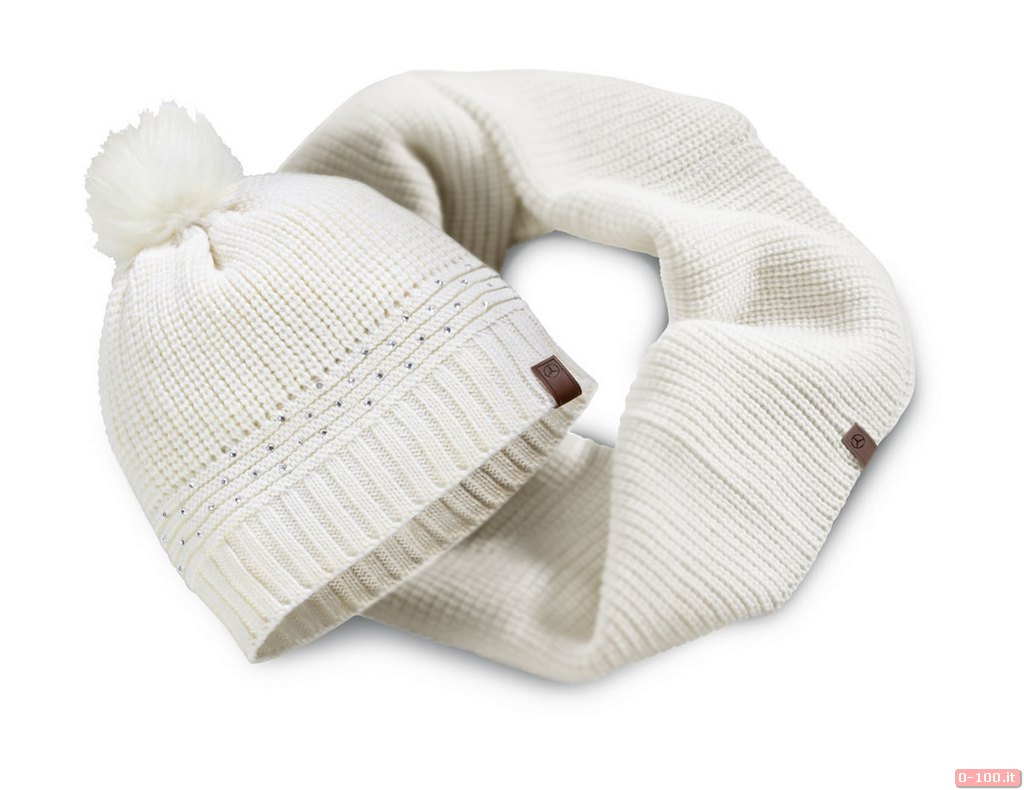 Sciarpa ad anello lavorata a maglia  in lana bianca (144 cm x 35 cm). Prezzo: 49,90 euro.