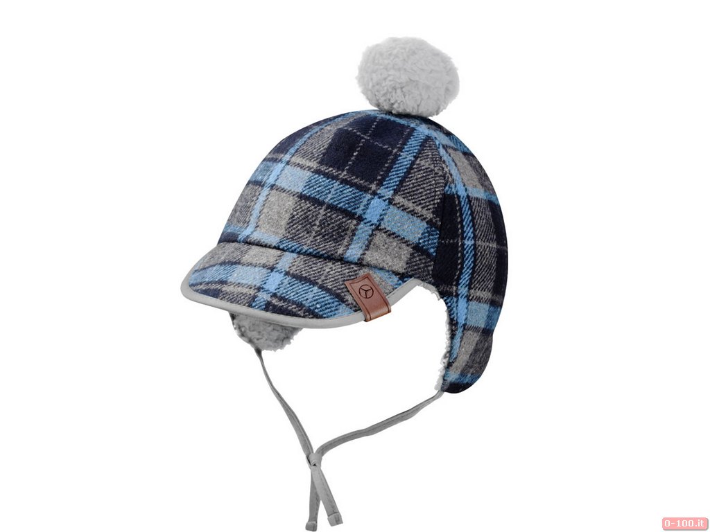Un cappellino da baseball con paraorecchie in grigio e turchese con un distintivo in pelle goffrata. Prezzo: 19,90 euro.