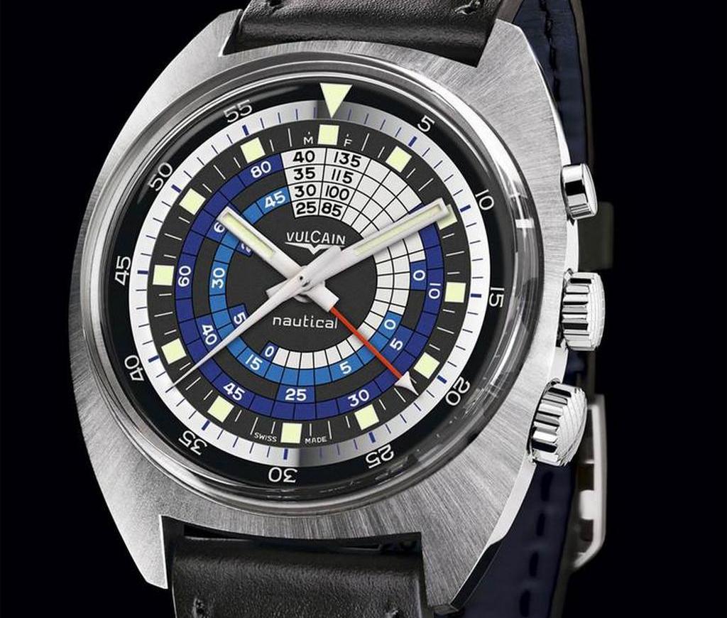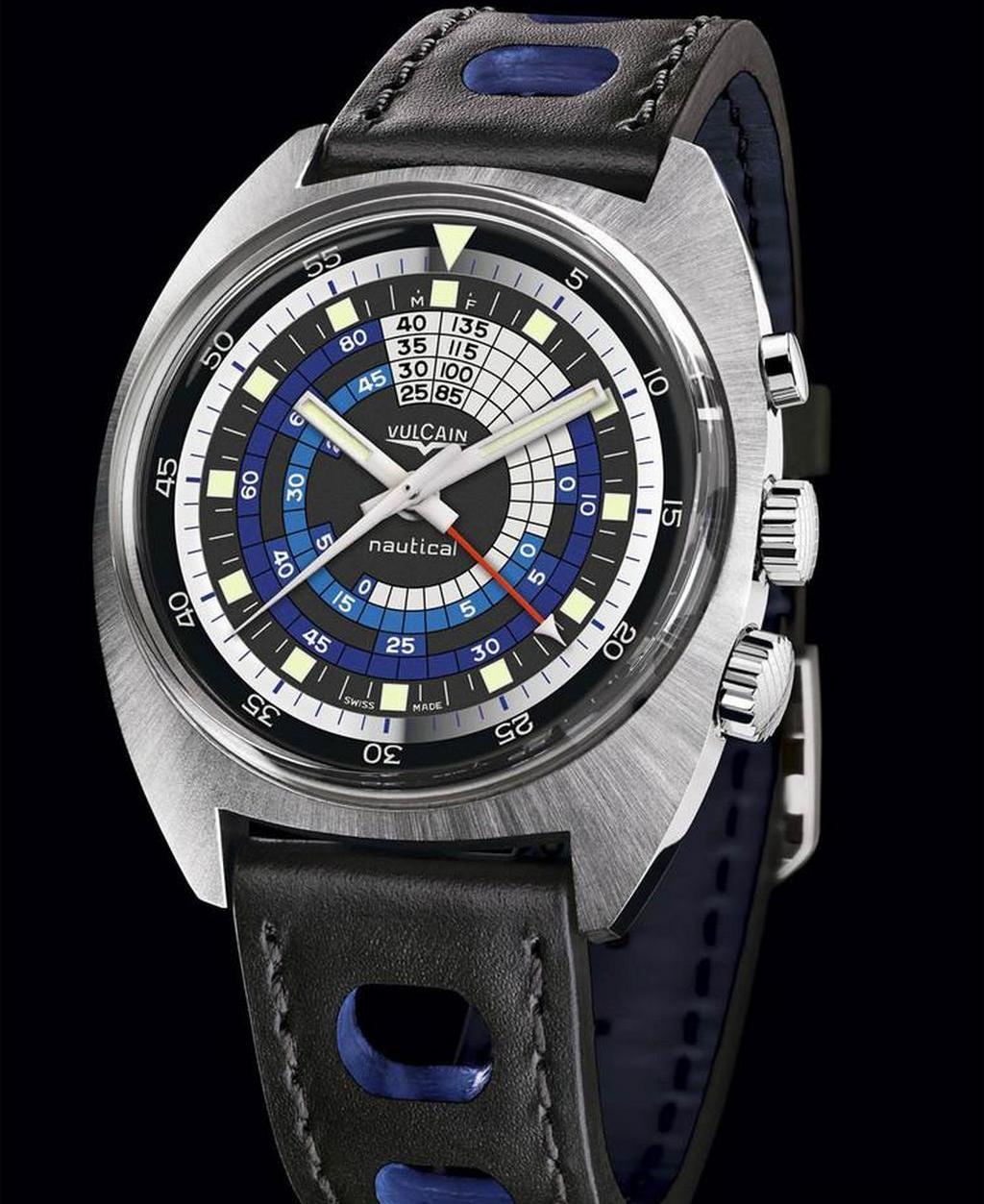 Il Nautical Seventies Blue Limited Edition Vulcain Trophy 2013 prende spunto dal modello Vulcain Nautical del 1970, il primo orologio subacqueo dotato di movimento con allarme subacqueo veramente udibile.
