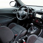 Gli interni della Juke Nismo sono caratterizzati da sedili sportivi in Alcantara con supporti laterali in camoscio e cuciture rosse (come sulla leva del cambio), strumentazione di colore rosso, volante in pelle e Alcantara con tacca rossa “a ore 12”, pedaliera in metallo, elementi della plancia in nero lucido.
