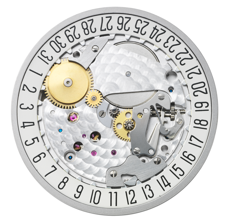 Questo segnatempo dalle linee essenziali e pulite vanta una protezione Incabloc, superfici del movimento rodiate con nervature, molla del bilanciere con viti azzurrate regolabile in 6 posizioni e riserva di carica di 42 ore.