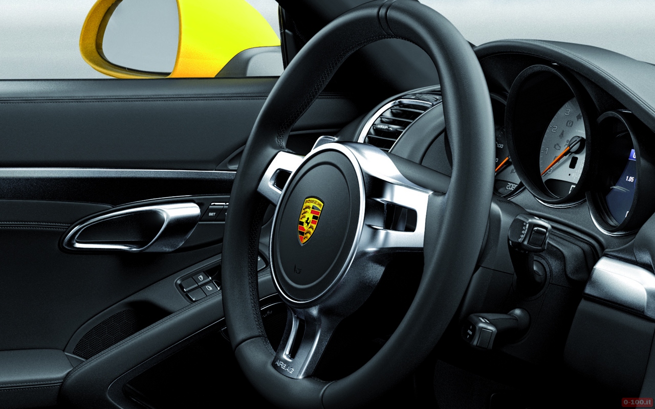 Porsche Cayman: motore 6 cilindri boxer, 2,7 litri, 275 Cv, 0-100 km/h in 5″4, 266 km/h, cambio meccanico a 6 marce (PDK doppia frizione a 7 marce), 8,2 l/100 km (con cambio meccanico, 7,7 l/100 km con cambio PDK), 53.075 EURO.
