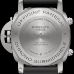 L’Officine Panerai Luminor Submersible 1950 3 Days Chrono Flyback Automatic Titanio 47mm (PAM00614) monta il calibro P.9100, il primo calibro cronografico a carica automatica sviluppato e realizzato dalla Manifattura Panerai di Neuchâtel.