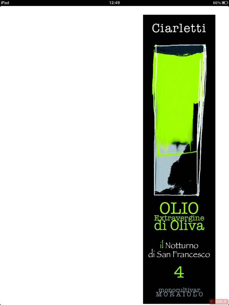 L’olio extravergine d’oliva monocultivar moraiolo “Il notturno di San Francesco”, è prodotto dall’azienda agraria umbra Ciarletti (Colli Assisi-Spoleto 500 mt. s.l.m.) grazie a ulivi centenari con età media di 150 anni.