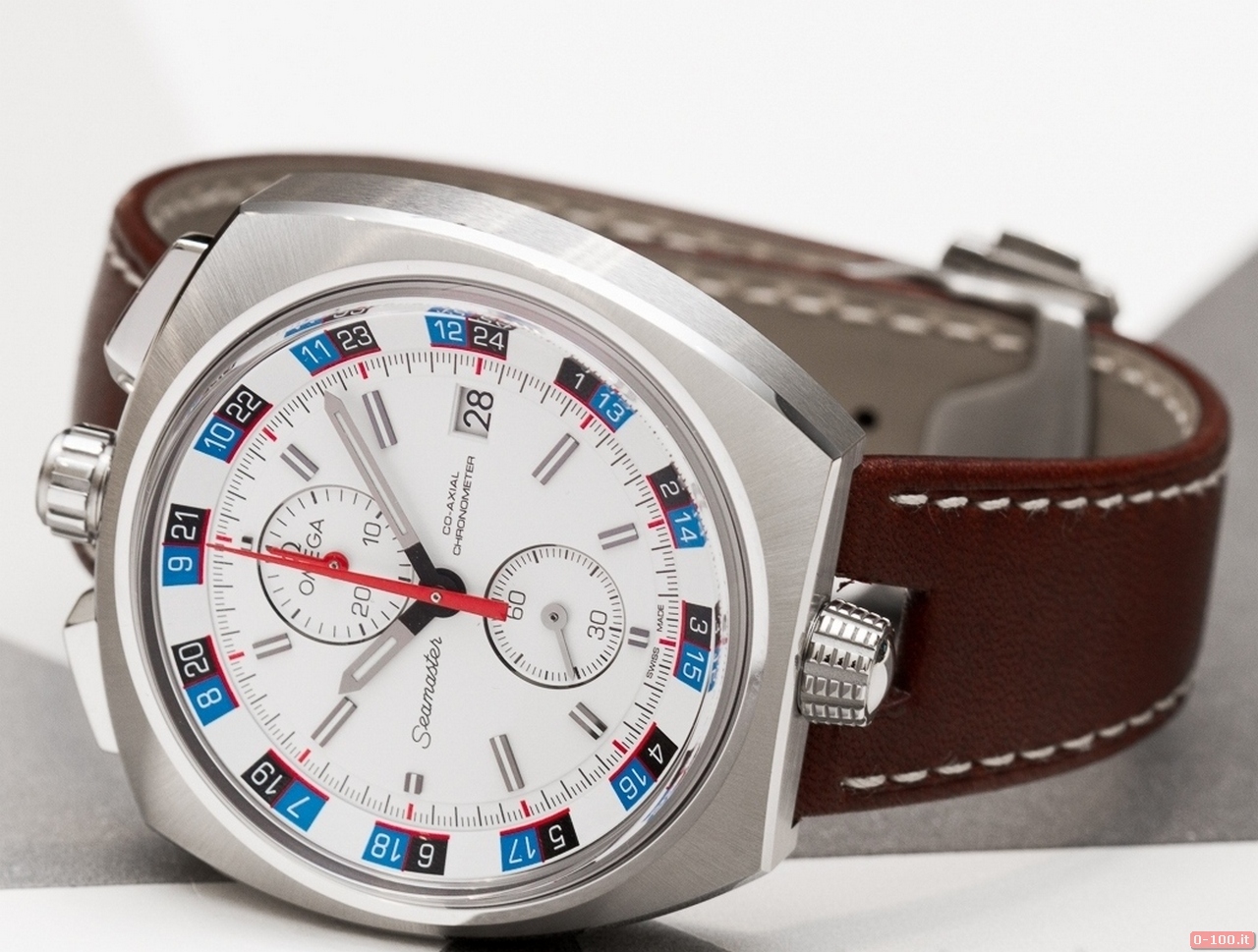 La nuova edizione si presenta con una cassa a forma di scudo in alluminio spazzolato con una lunetta girevole interna con scala delle 12/24 ore, un pusher più arrotondato nella parte superiore della cassa e logo Omega sulla corona.