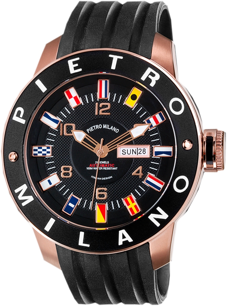 All’interno è equipaggiato con un movimento meccanico a carica automatica che fornisce ore, minuti, secondi e datario con giorno della settimana alle ore 3.