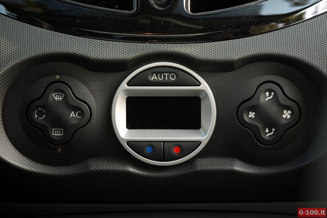 Sulla versione in prova per 0-100, ha un’immagine che tende al puro luxury grazie all’ equipaggiamento completo del Pack COMFORT. Complessivamente la Twingo presenta climatizzatore automatico (300 €), radio con CD e comandi al volante, presa AUX e USB, tetto apribile elettrico (800 €), specchi e vetri elettrici, cruise control e alcuni particolari rivestiti in pelle (volante, pomello cambio e palpebra della strumentazione).