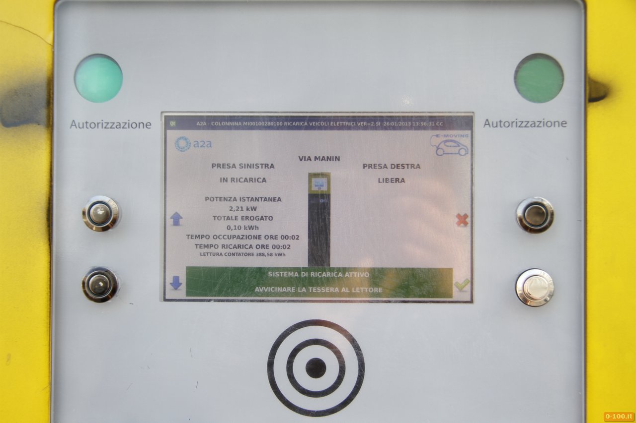 L’autonomia che abbiamo riscontrato durante il test è stata di 80 chilometri, che in un uso esasperato (provando a guidare “come 0-100 comanda“) è scesa a poco più di 50 chilometri. Molto fanno, in tal senso, le numerose colonnine di ricarica sparse per la città di Milano, scenario del test. Oppure la sera, la rimetti nella sua “tana” e l’attacchi al biberon: in circa 3 ore e mezza, le batterie sono di nuovo cariche.