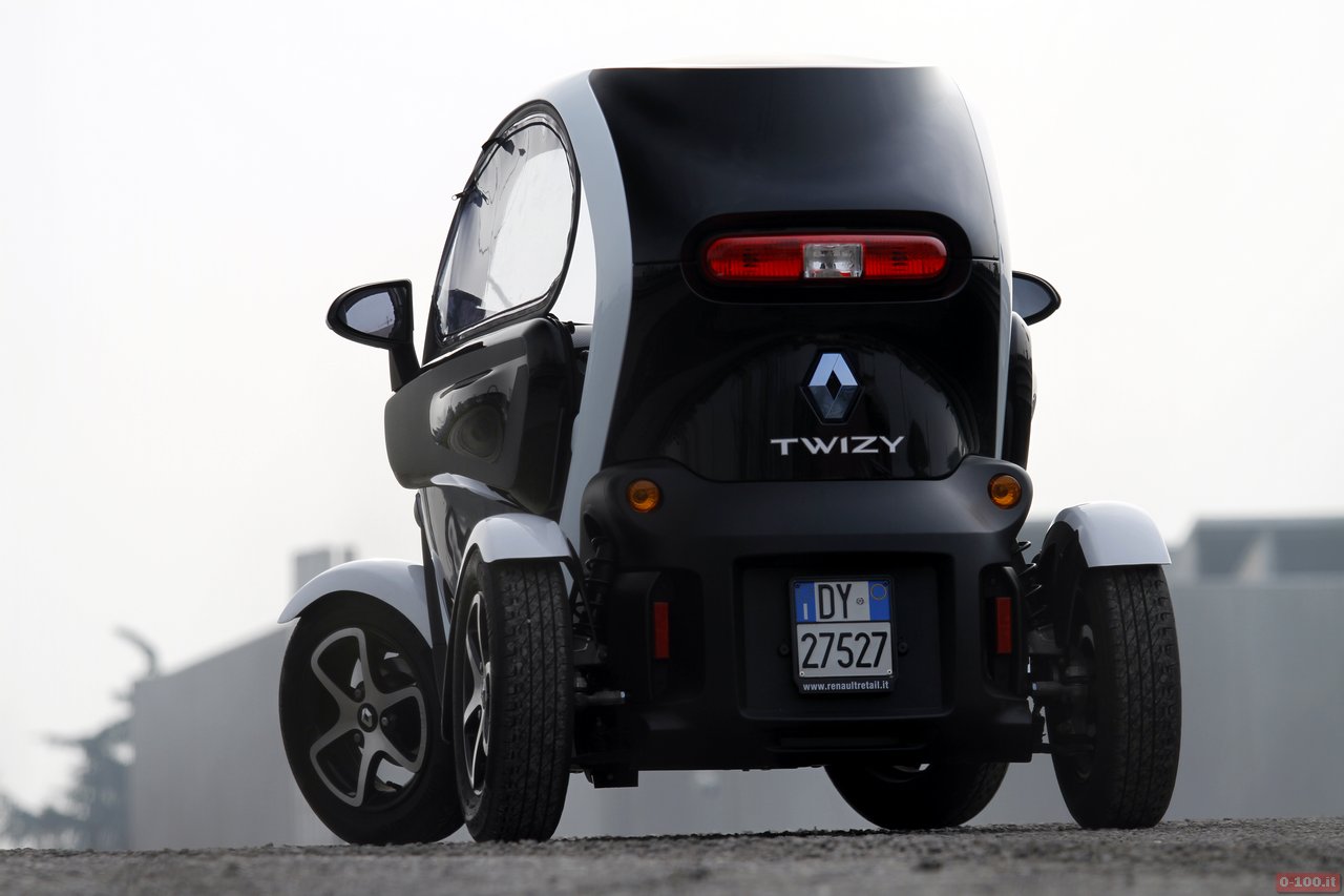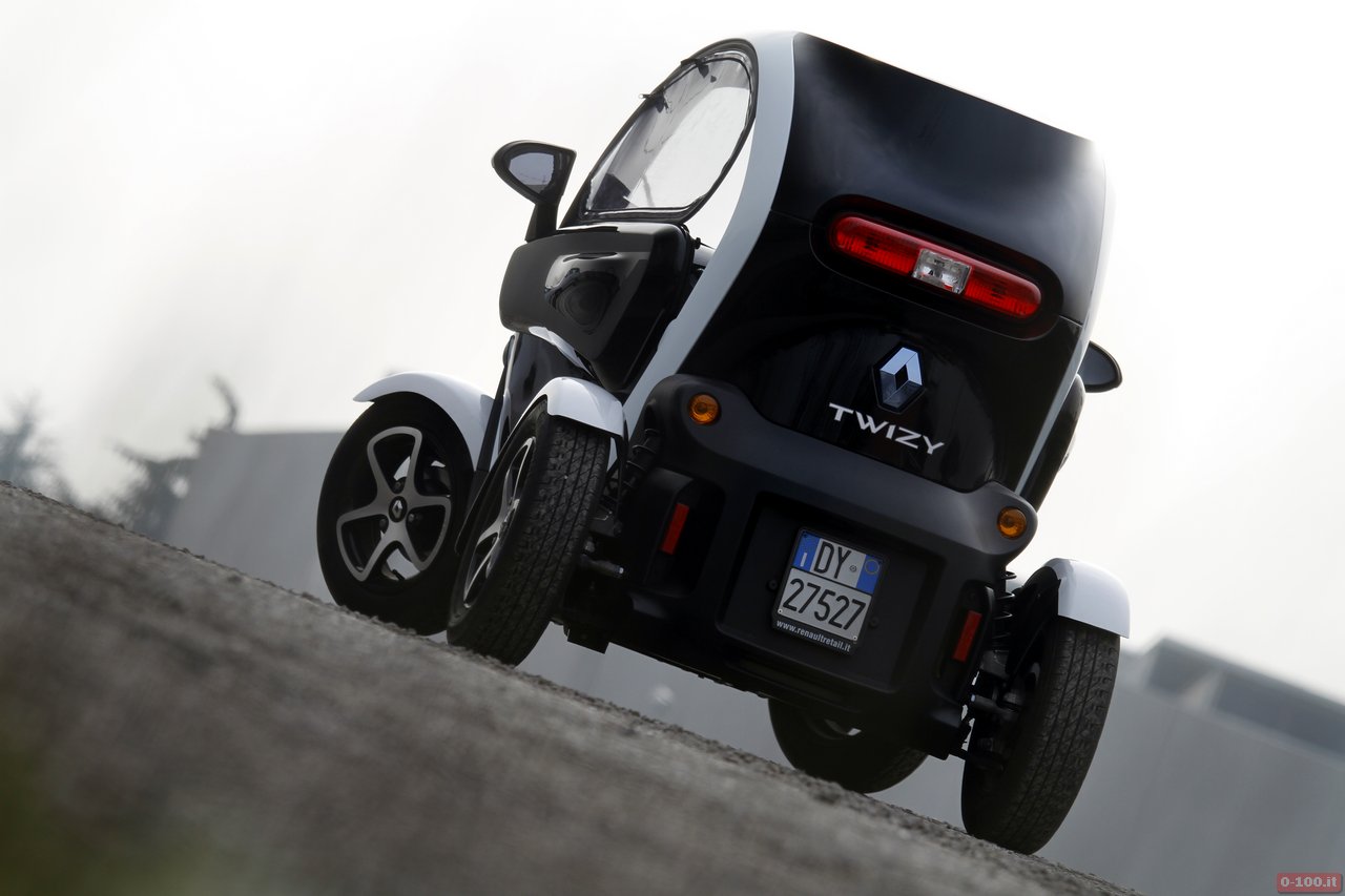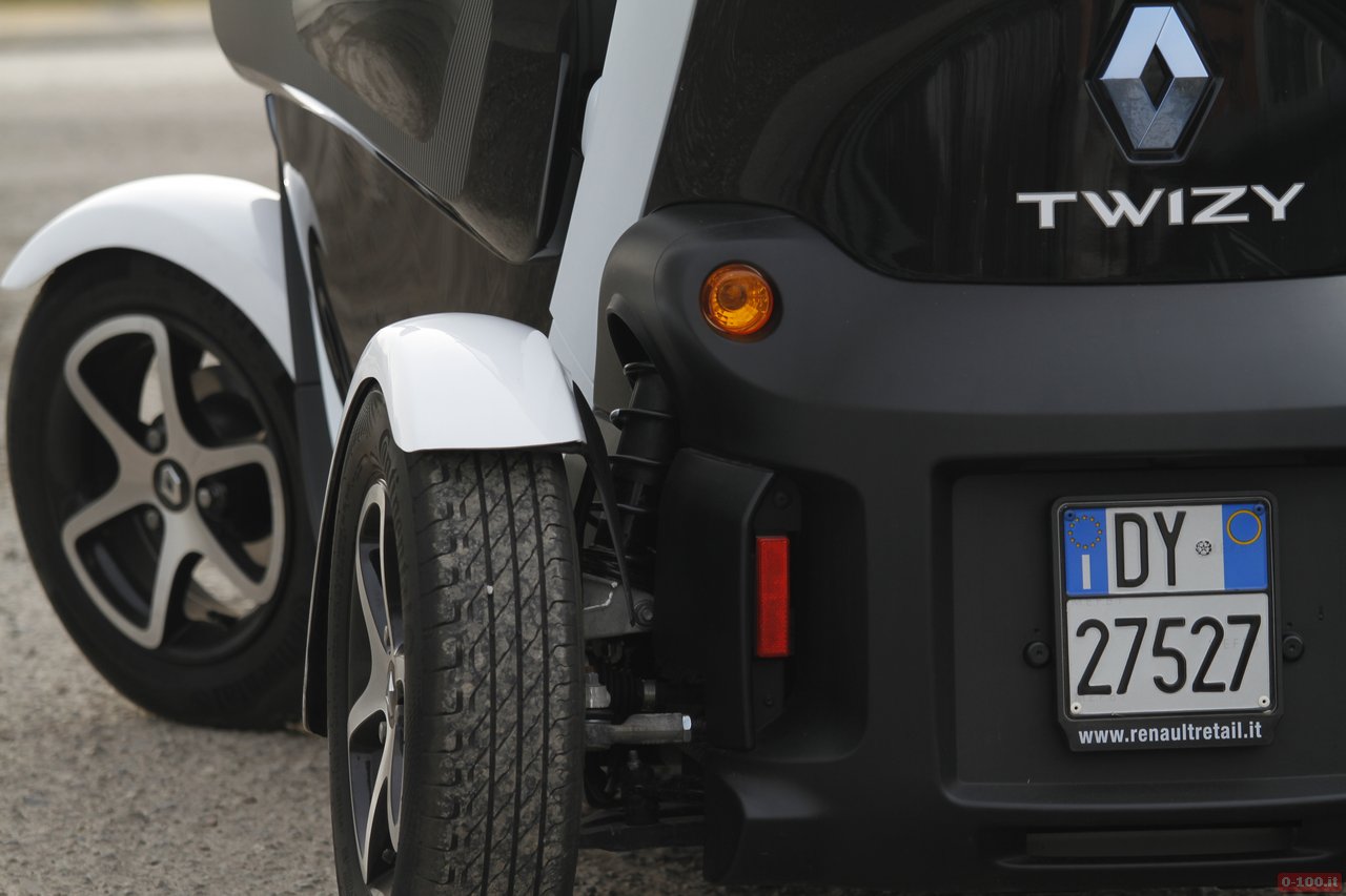 Non bisogna lasciarsi ingannare dalle apparenze e dalle microcar: la posizione di guida della Twizy è stata studiata per essere la stessa di un’auto normale. Lo sterzo è molto diretto e questo permette di sfruttare l’agilità del piccolo corpo vettura (la versione “veloce” da 8o km/h pesa 447 kg) e lo scatto del motore elettrico per una guida frizzante e sicura. Infatti il baricentro basso e l’assetto rigido danno una sensazione di grande stabilità, al punto che, nelle curve strette, anche esagerando, è molto difficile innescare un sottosterzo. Grazie al peso contenuto, inoltre, anche la frenata è potente e ben modulabile.