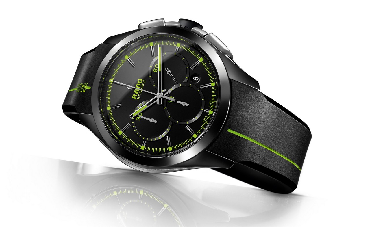 Solitamente il colore abbinato a questo sport è il bianco, Rado ha deciso invece di dare alla Hyperchrome Court Collection un tocco vitaminico pur mantenendo la base “nero Rado”.