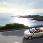 La tinta vintage avorio Floride della carrozzeria (con ruote Sari in alluminio da 17 pollici diamantati, anch’esse in tinta avorio) si abbina ai rivestimenti interni in pelle bicolore rosso/avorio: schienale e seduta in rosso, lati avorio, volante rivestito di pelle pieno fiore bicolore, avorio/rosso, plancia rossa con modanatura avorio.