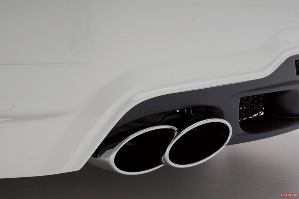 Il kit, costituito da elementi in fibra di carbonio, è composto da un nuovo scudo paraurti anteriore (che può essere integrato di luci a led ai lati delle prese d’aria inferiori), sfoghi di flusso dietro i passaruota anteriori, minigonne, e nuovo scudo posteriore con estrattore.