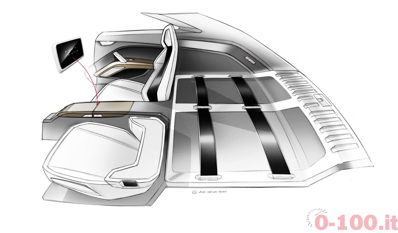 L’abitacolo presenta lo stesso layout della nuova Audi TT (con strumentazione sostituita da un unico grande schermo da 12,3 pollici) ma con spazio abbondante per 4 persone. Sui posti posteriori (due sedili sportivi con poggiatesta integrati), infatti, la TT Offroad Concept ospita comodamente due adulti. I 4 sedili sono rivestiti con pelle Nappa in grigio Granito mentre montanti, pannelli porta, tunnel e soffitto sono in Alcantara.