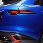 La parte posteriore della vettura ha il carattere distintivo di una vettura sportiva con fiancata, luci posteriori e dettagli aerodinamici che riportano alla mente la seducente Jaguar F-TYPE.
