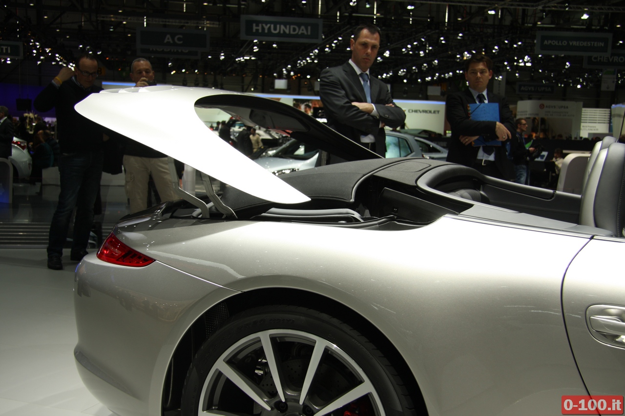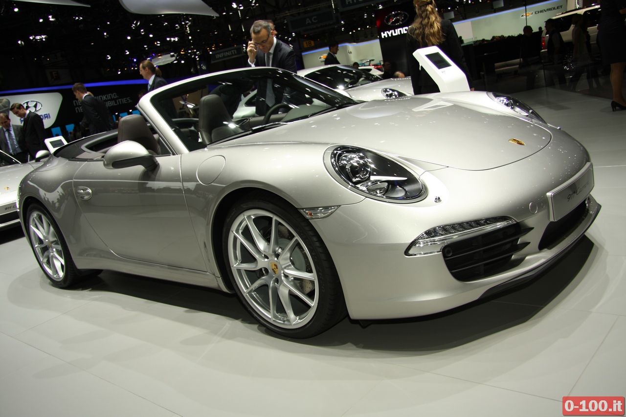 La gamma 911 si amplia alle Carrera cabrio, in prima apparizione europea a Ginevra dopo il debutto del NAIAS 2012. La versione scoperta della 991, disponibile in versione Carrera 3.4 da 350 Cv e Carrera S 3.8 da 400 Cv. Grazie al largo uso di materiali leggeri (tra cui il magnesio per la struttura della capote), la nuova 991 Carrera Cabriolet è più leggera della precedente 997 Cabriolet, caratteristica che consente alla Casa di Stoccarda di dichiarare consumi ed emissioni inferiori a prima.