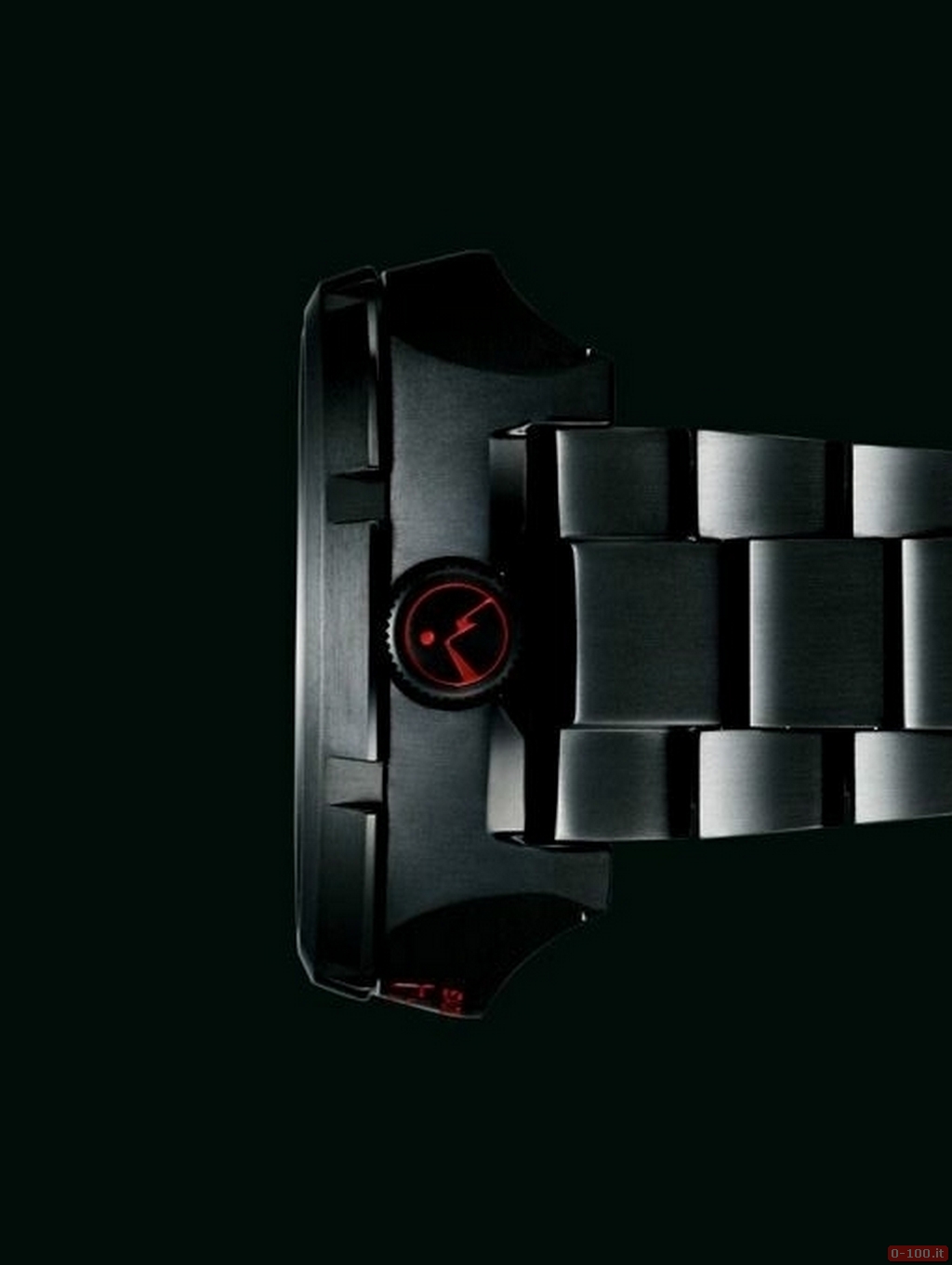 L’orologio, protetto da vetro zaffiro anti-riflesso, offre una resistenza all’acqua fino a -100 metri e viene fornito con un bracciale in titanio nero e un cinturino in nylon.