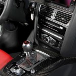 L’abitacolo è stato personalizzato con sedili in pelle bicolore, particolari in fibra di carbonio, pedaliera sportiva e volante dell’Audi R8.