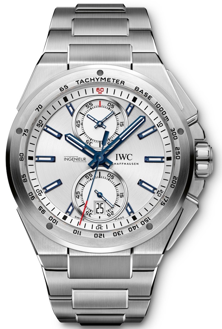 L’Ingenieur Chronograph Racer è disponibile con quadrante color ardoise e contatori neri o quadrante e contatori argentati nonché lancette/indici e numeri applicati blu.