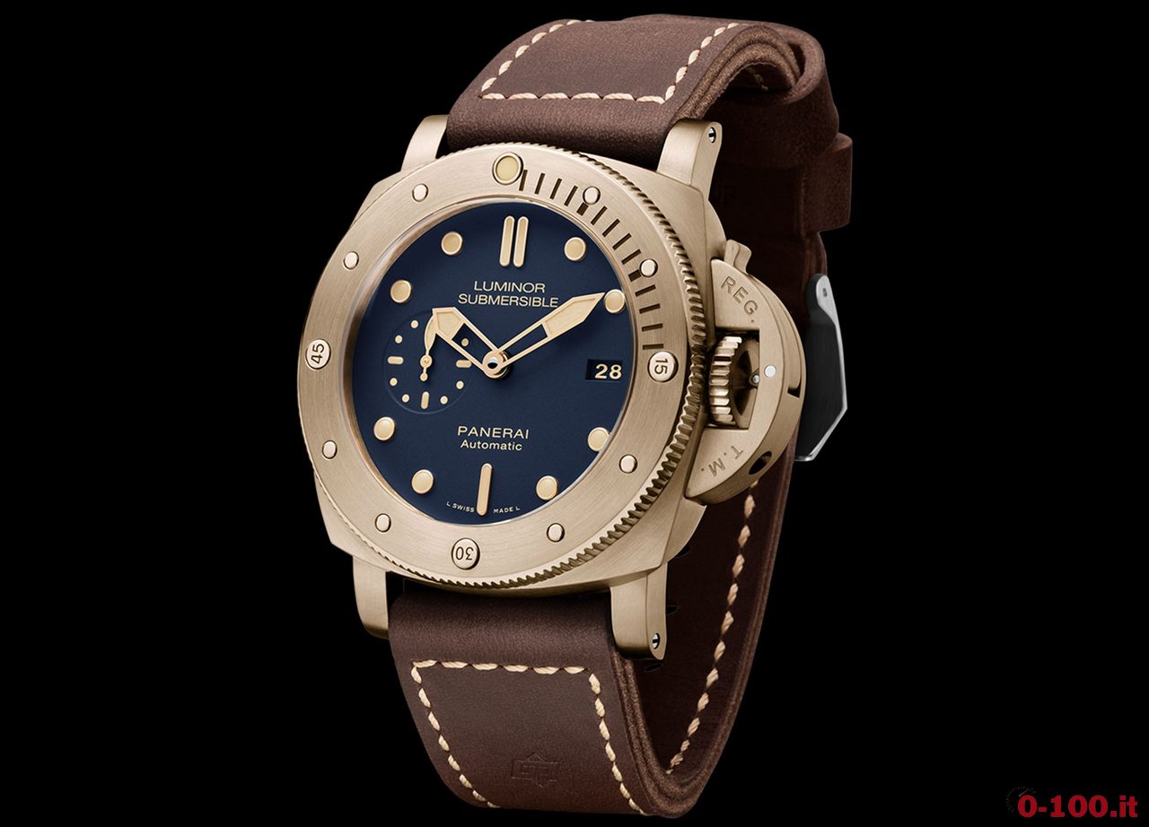 L’Officine Panerai Luminor Submersible 1950 3 Days Automatic Bronzo (PAM00671), impermeabile fino a 300 metri, è un’edizione speciale di 1.000 esemplari.