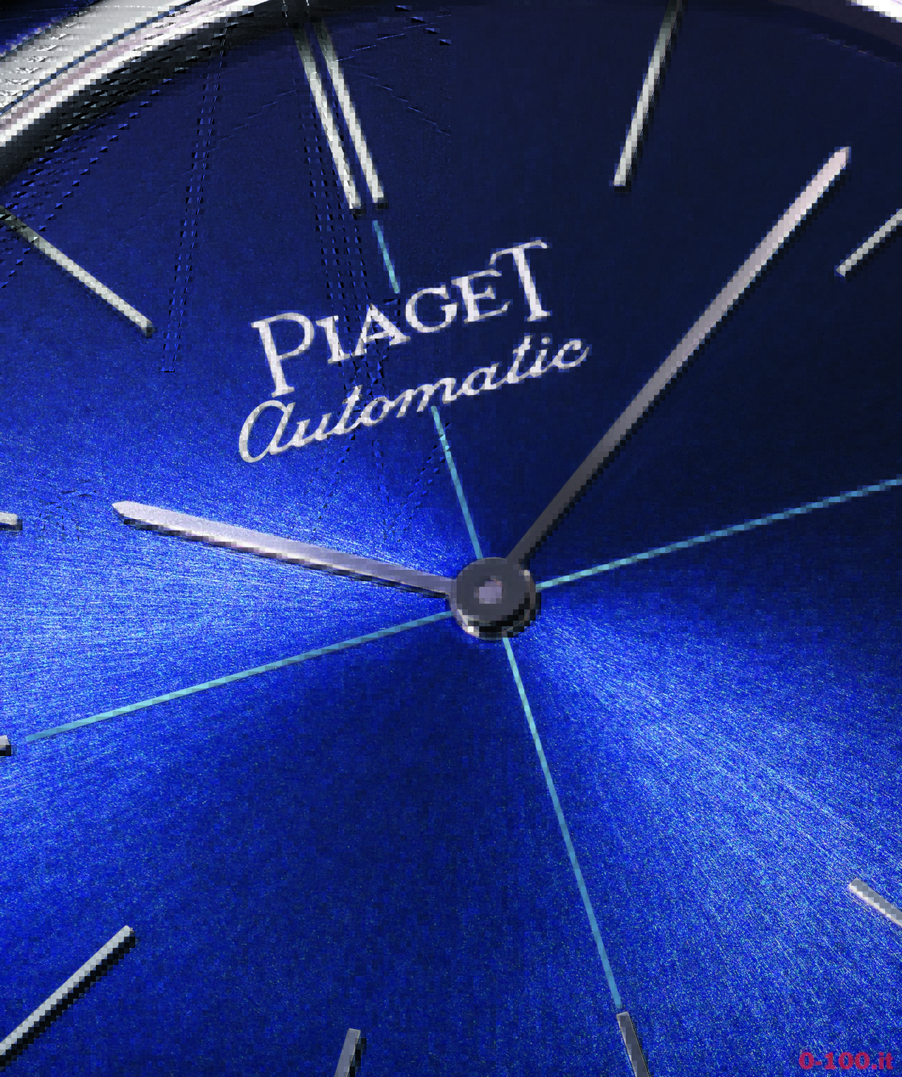 Il cuore meccanico, montato in una cassa in oro bianco 18kt di 43 millimetri di diametro, è il calibro automatico ultra-piatto 1200P di 2,35 millimetri di diametro. Il meccanismo, che vanta platina perlata, ponti smussati con decoro Côtes de Genève circolare, viti azzurrate e massa oscillante in oro con l’incisione del blasone Piaget, fu presentato per la prima volta nel 2010 in occasione del 50°anniversario del calibro 12P.