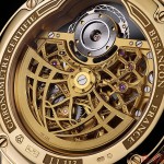 Il Regolatore automatico a tourbillon Squelette è una serie speciale prodotta in soli 7 esemplari, equipaggiati con un movimento a tourbillon automatico, interamente “squelette” fatto a mano. Ha l’Indicazione dei minuti al centro, dell’ora su disco ausiliare a ore 6 e lancetta dei secondi – a forma di freccia – sulla gabbia del tourbillon volante posizionato alle ore 12.