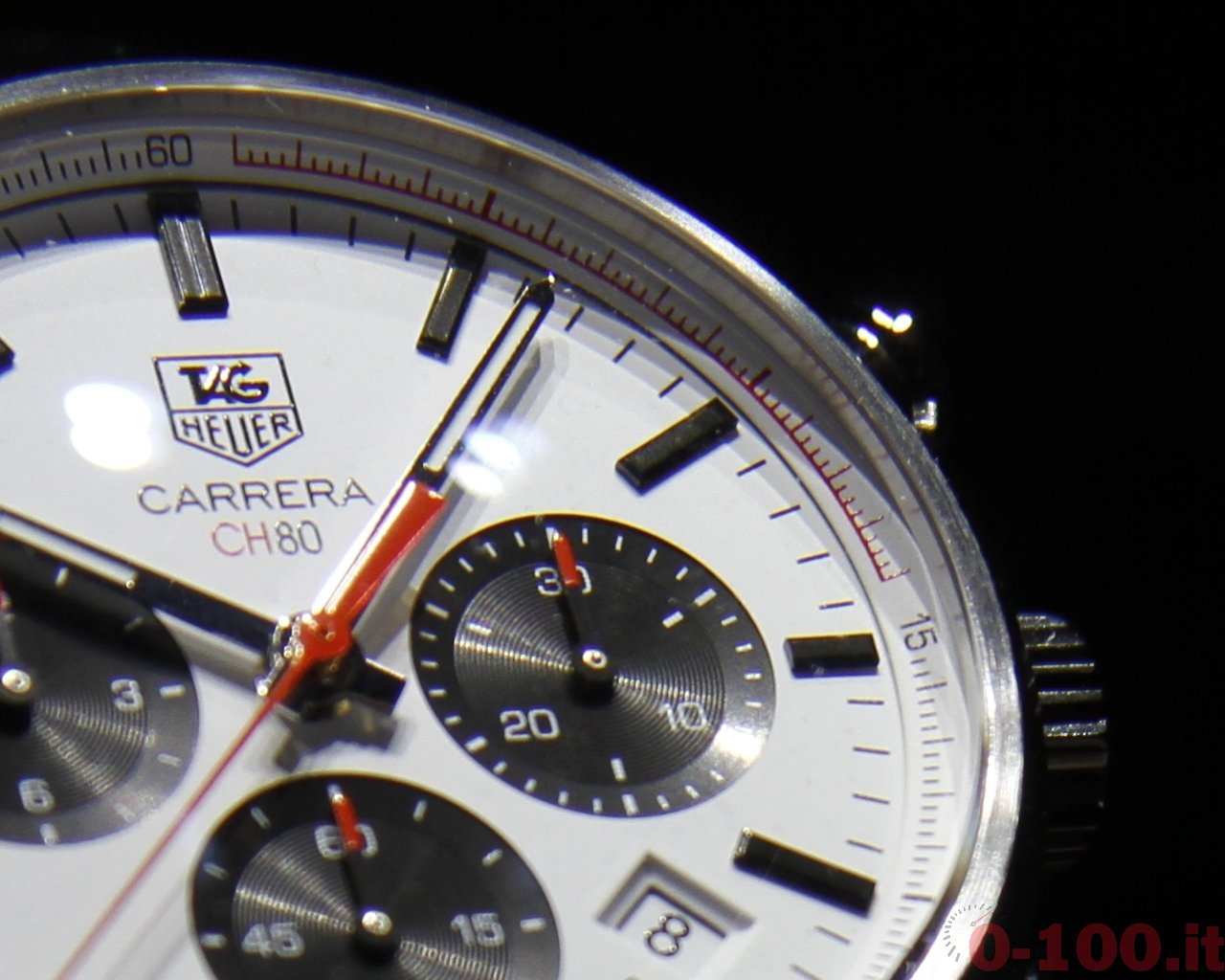 L’iconico modello Carrera ospita, per la prima volta, il nuovo calibro CH80, un movimento di manifattura con ben 80 ore di riserva di carica. La cassa in acciaio ha un diametro di 41 mm. Le funzioni si presentano su un quadrante declinato alla maniera iper-classica (fondo nero con piccoli contatori bianchi o viceversa): minuti cronografici alle 3, ore crono alle 9, secondi continui alle 6.