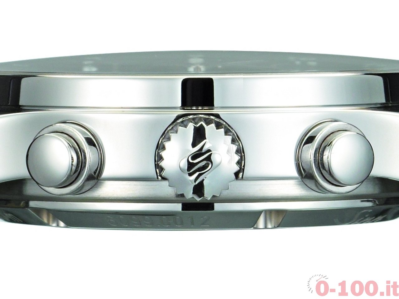 Sobrio, elegante, molto sportivo, si propone con cassa in acciaio da 41 mm. La lunetta, in alluminio, propone la scala tachimetrica fino a 400 km/h. Sul quadrante nero trovano posto, a ore 3 il contaminuti, a ore 9 il conta ore e alle 6 i secondi continui con datario.
