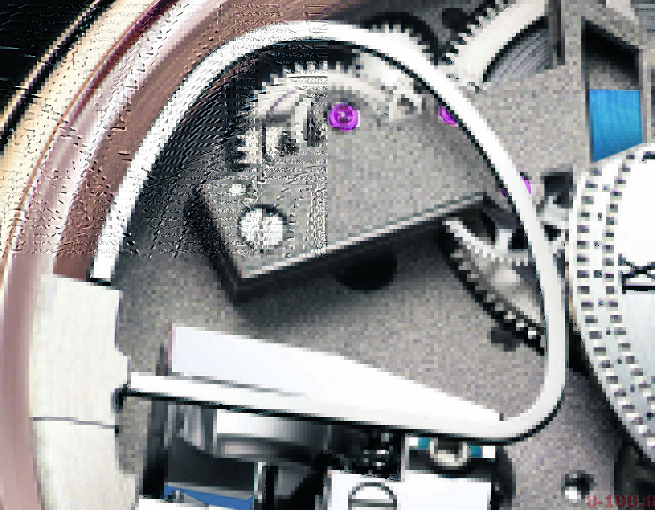 Le molle sonore sono fissate a una lunetta sonora, avvitata sul telaio per mezzo di tre perni, che consentono alla lunetta stessa e al vetro di vibrare liberamente. I martelletti (dotati di ammortizzatore semi-attivo per evitare un rintocco supplementare dato dalle vibrazioni) colpiscono i timbri con un movimento verticale, un’assoluta novità per questo tipo di complicazione.