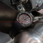 Impermeabile fino a 100 metri, questo cronografo da corsa dispone di un fondello con apertura in vetro zaffiro fumè con vista sul bilanciere. Il cinturino in caucciù e fibra di carbonio è chiuso con una fibbia ad ardiglione in acciaio PVD nero con inserto in caucciù. Prezzo: 22.000 euro.