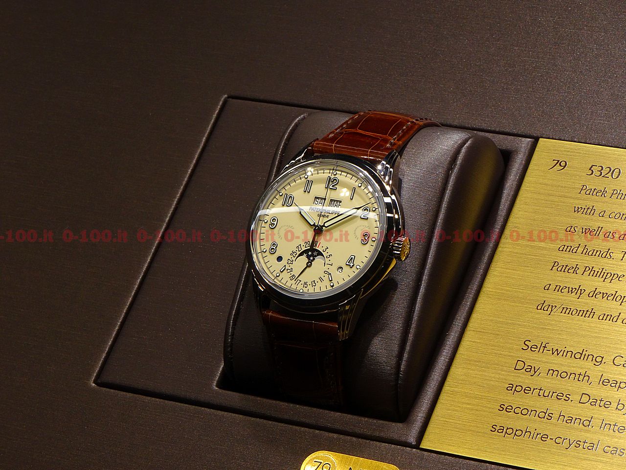 La prima grande novità di Patek a Baselworld 2017 interessa la Referenza 5320: questa presenta un calendario perpetuo con un nuovo look presentato in una nuova cassa monoblocco in oro bianco, necessario per realizzare alcune lavorazioni particolari come lo stacco, molto netto, tra la cassa stessa, l’ansa e il triplo scalino. Il quadrante, colore Crema, ricorda gli orologi degli Anni 50 e 60 e il vetro, molto spesso, poggiando direttamente sul quadrante ricorda gli orologi vintage in cui la copertura era tipicamente in plexiglas. Lo stesso vale, infine, per indici e lancette, caratterizzati da un aspetto particolare. Monta, a differenza di altri calendari perpetui, il calibro 324, uno dei movimenti base della produzione Patek. E’ un calibro autromatico con generosa massa oscillante centrale, utilizzato anche sulla linea Nautilus e Calatrava.