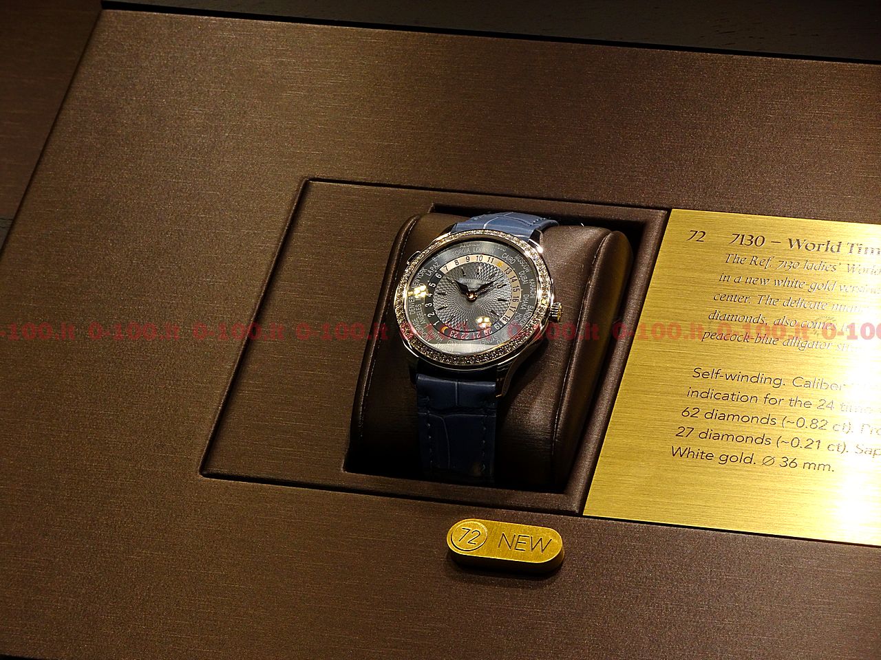 Quest’anno si festeggiano i 20 anni della collezione Aquanaut. Questo importante traguardo viene feteggiato con un modello in versione “jumbo” – Ref. 5168G-001 – molto grande per gli standard Patek (40,8 mm) – un più grande rispetto alle proporzioni canoniche, in oro bianco e quadrante blu. Vi si aggiunge una versione speciale in 500 pezzi, appartenente alla collezione Advanced Research, e che riguarda la versione Travel Time dotata di secondo fuso orario. Questo modello, Ref. 5650, E’ equipaggiato con un meccanismo di regolazione del doppio fuso orario – tramite pulsante – dotato di una nuova guida flessibile che sostituisce il vecchio dispositivo con due diverse parti (35 componenti) con movimento indipendente. A loro volta assemblate su un micro ponte, Patek sostituisce tutto il blocco sfruttando l’elasticità dell’acciaio e creando un unico componente con parti sottilissime che va a sostituire tutti e due i blocchi. Il risultato è che i componenti scendono da 35 a 12. L’ulteriore innovazione è la spirale. Nel 2006 Patek ha presentato la spirale Spiromax in silicio. Ora, all’interno della spirale, è stata aggiunta una nuova curvatura che controbilancia gli effetti della gravità aumentando la precisione e le regolarità di funzionamento (+1/-2 secondo le misurazioni di Patek).