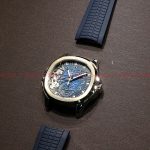 Un’ulteriore novità riguarda la Ref. 5960, cronografo con calendario annuale. Presentato con cassa in platino nel 2006, e allargatosi a ulteriori versioni, viene ora razionalizzato e si presenta in listino unicamente con cassa in oro bianco e quadrante blu opaco dove spiccano con intensità le indicazioni del crono sia le lancette di colore rosso. Di questo modello è disponibile anche una versione in acciaio (con bracciale dello stesso materiale) con quadrante nero.