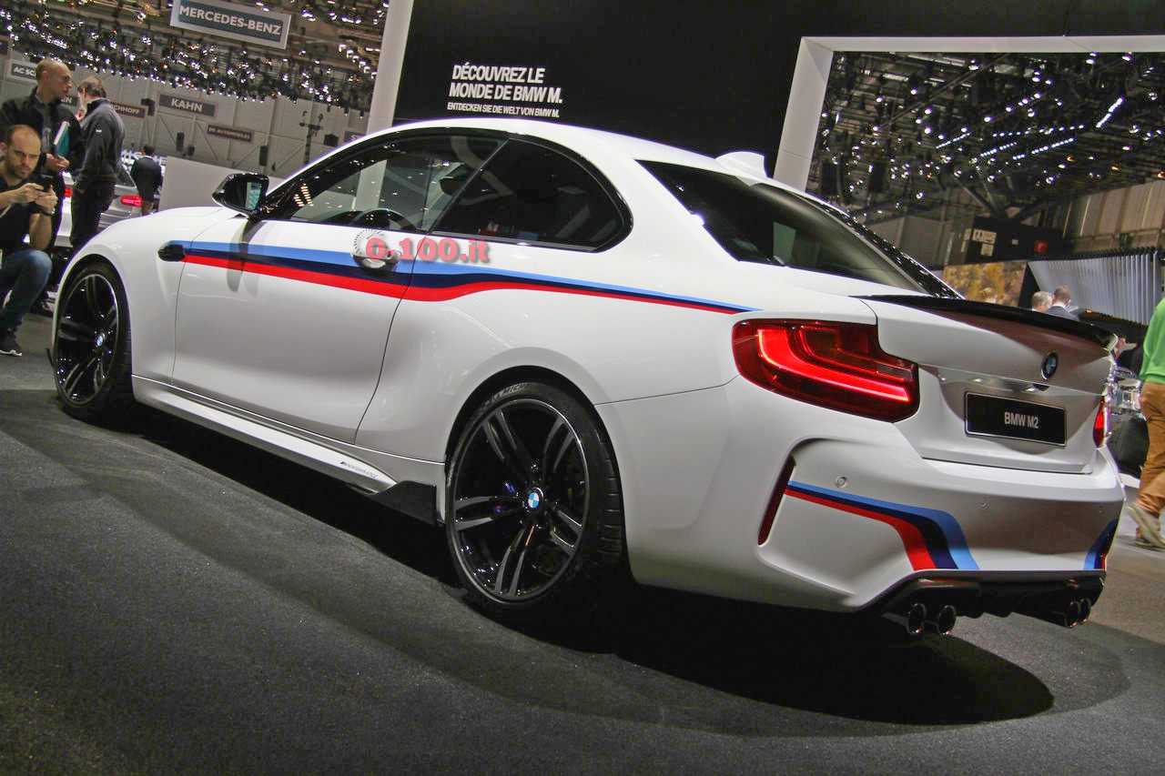 Il salone di Ginevra presenta due esemplari della M2, dei quali uno presenta i nuovi accessori di personalizzazione M-Performance creati da M GmbH. Dal punto di vista estetico, il catalogo propone applicazioni per i brancardi, spoiler anteriore, diffusore posteriore e calotte per gli specchietti.