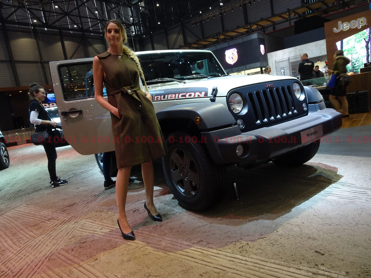 Sullo stand del costruttore americano sono esposti anche alcuni esemplari di Wrangler Rubicon, Cherokee Oveland e Renegade equipaggiati con gli accessori firmati Mopar (studiati per personalizzare il proprio esemplare con un look ancora più distintivo o “potenziarne” l’immagine fuoristradistica) e i modelli della famiglia Trailhawk (quelli cioè che hanno ricevuto il badge “Trail Rated”, assegnato da Jeep ai veicoli che sono in grado di percorrere il famoso Rubicon Trail californiano, considerato uno dei percorsi off-road più estremi al mondo, senza accessori ulteriori rispetto all’equipaggiamento di serie fornito da Jeep).