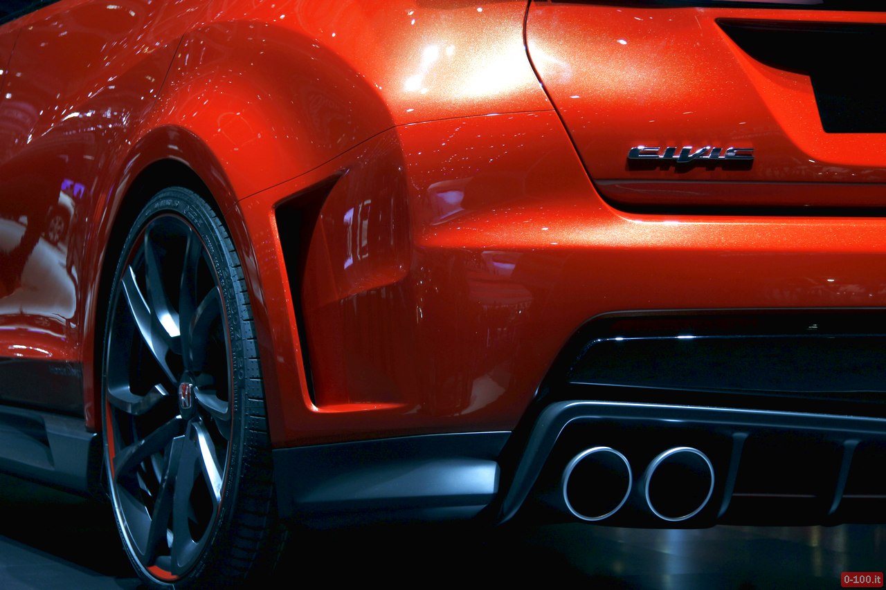 La Civic Type-R è attualmente impegnata nei test di sviluppo (come dimostra il prototipo esposto a fianco), soprattutto dal punto di vista dinamico sulla pista del Nurburgring. La Concept, nel frattempo, descrive il lavoro degli stilisti per dare una personalità adeguata al design secondo le esigenze aerodinamiche. Lo stile e le caratteristiche del Concept sono stati concepiti in Europa, dal team Honda del Centro Ricerca e Sviluppo di Swindon, Regno Unito. La Civic Type-R è un trionfo di spoiler, alettoni e superfici pronunciate. In coda l’elemento più caratteristico è il nuovo spoiler posteriore con luci di posizione a LED integrate nell’ala.