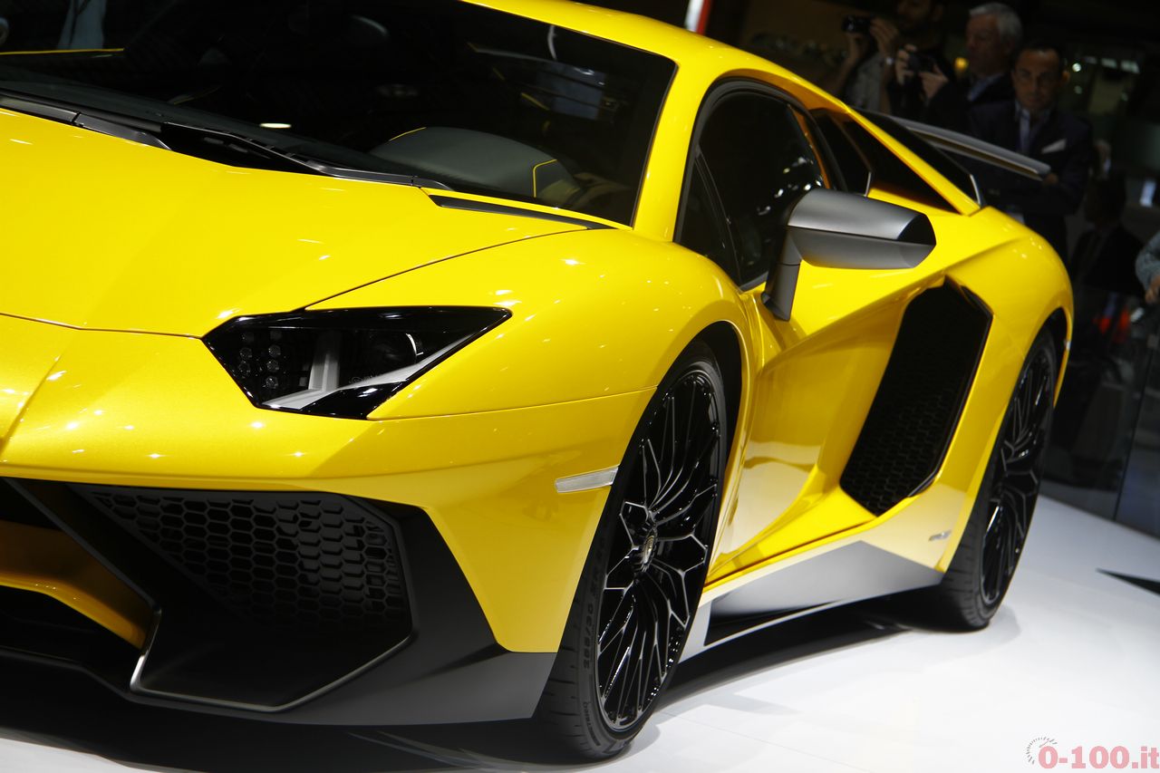 FIFTY – FIFTY. LA LAMBORGHINI AVENTADOR LP750-4 SV PESA 50 KG IN MENO E HA 50 CV IN PIU’. L’AERODINAMICA E’ STATA OTTIMIZZATA, L’INTERNO E’ STATO SPOGLIATO DI PARTE DEL RIVESTIMENTO FONOASSORBENTE E RENDENDO PARTE DELLA SCOCCA A VISTA. 0-100 IN 2,8 SECONDI, OLTRE 350 KM/H, QUASI 400.000 EURO (IVA INCLUSA).