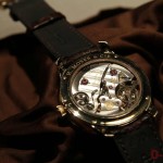 In una cassa in oro bianco 18kt (38.2 x 44.0 x 10,3 mm) con corona a vite, è alloggiato il calibro di manifattura a carica manuale HMC 324 (18.000 alternanze l’ora). Offre le funzioni di ore, minuti, piccoli secondi decentrati al 6 e l’indicatore della riserva di carica(minimo 100 ore) visibile lato fondello in vetro zaffiro.