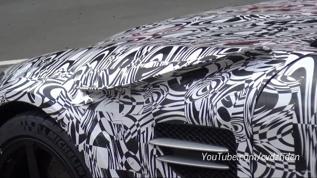 E’ stata, infatti, recentemente filmata lungo le curve del Nordschleife un esemplare cammuffato della coupé di Stoccarda, equipaggiata con una serie di appendici aerodinamiche aggiuntive piuttosto allusive (come il flap sulla sommità del passaruota anteriore).